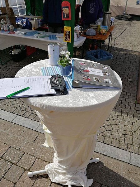 Das Flohmarktlädchen ist geöffnet und wir haben einen Infostand mit veganen Waffeln und Kaffee gegenüber dem Lädchen.